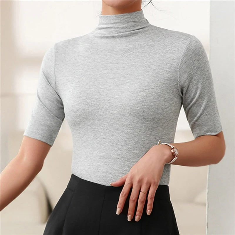 This women’s shirt is made from soft fabric and designed with a turtleneck and short sleeves. The lightweight construction and the plain shirt makes it suitable for year-round wear, including layering during transitional seasons.